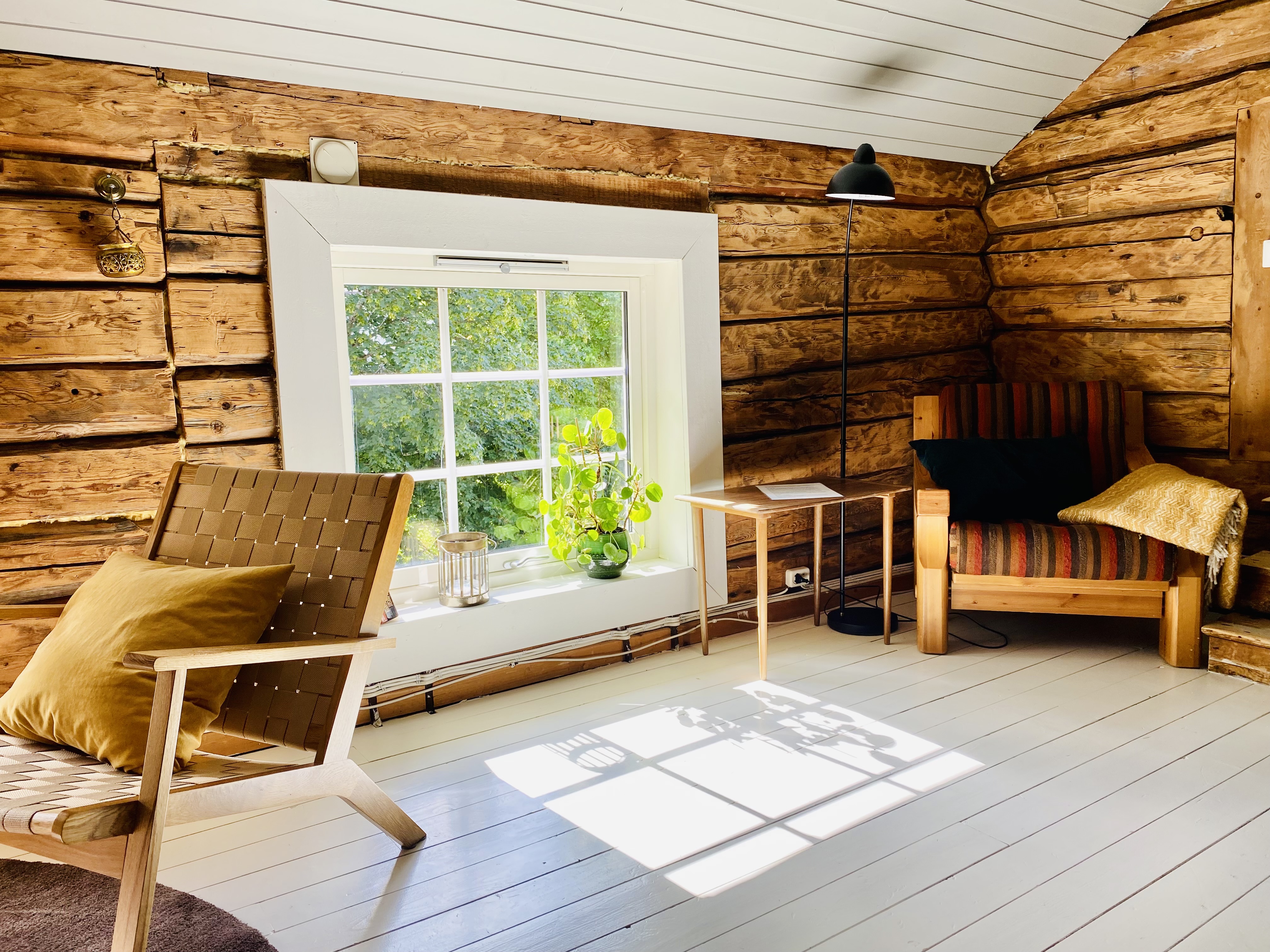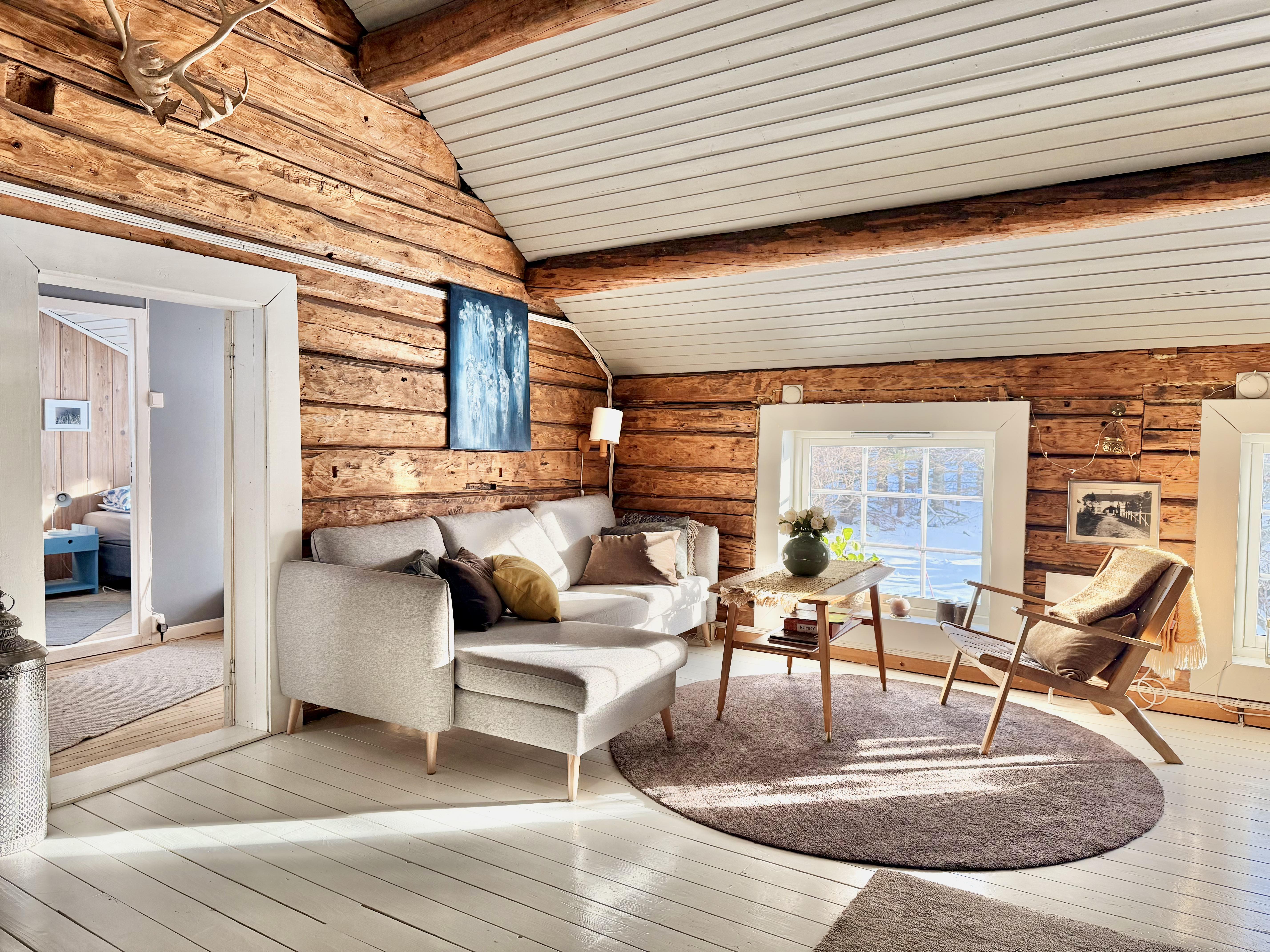 De eneste lydene er fra naturen med vinden, regnet som drypper på taket eller stormene som gjør deg takknemlig for å være omgitt av solide og lune tømmervegger.